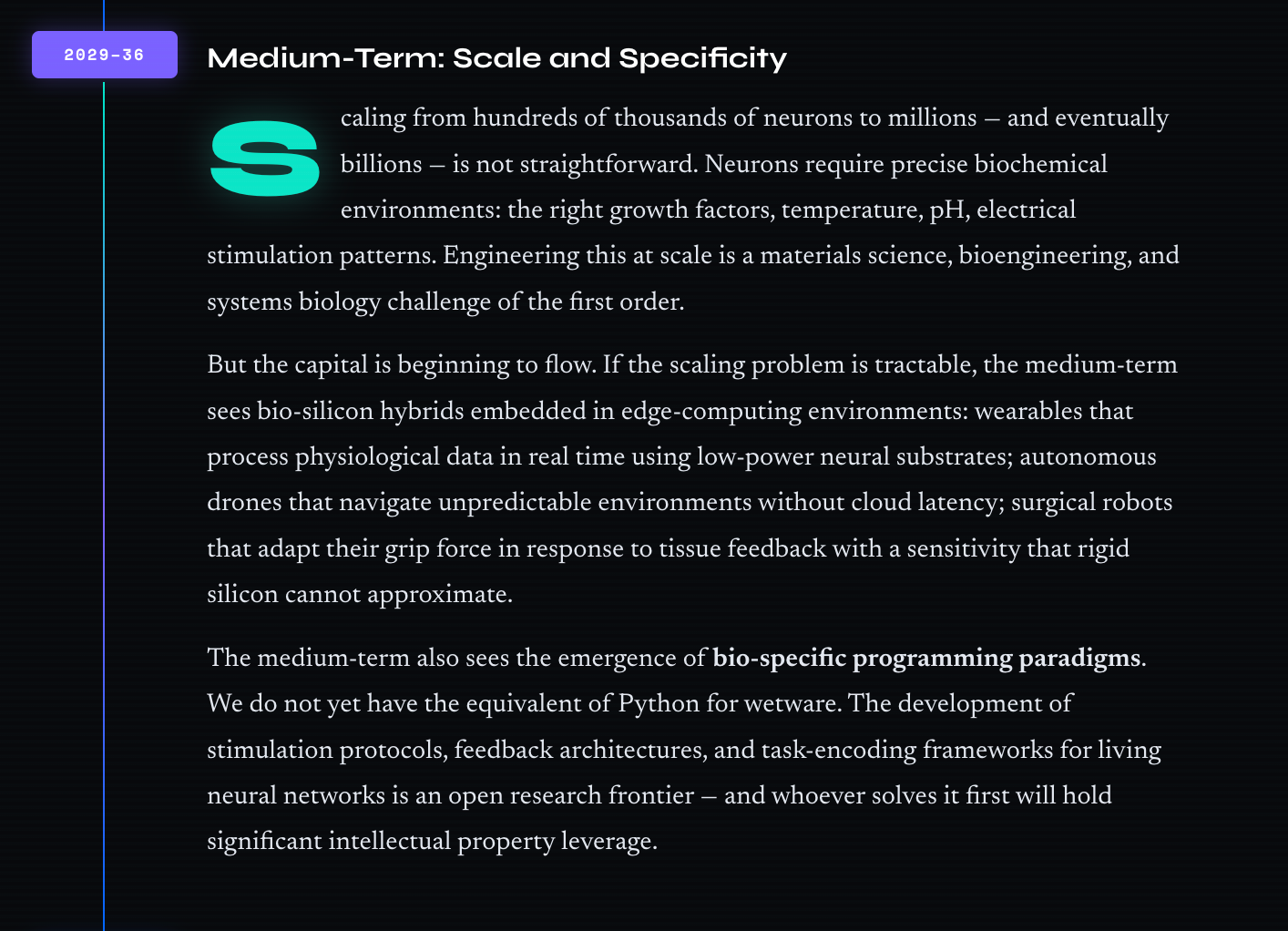 Access and equity. Biological computing, if it delivers on its promise, will initially be concentrated in well-capitalised institutions. The wetware-as-a-service model mitigates this somewhat — but the history of transformative technologies suggests that the gap between early adopters and late adopters tracks existing inequalities with painful fidelity. The global health implications are enormous, but they will only be realised equitably if access is designed in from the beginning.