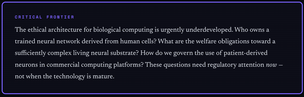 Cortical Labs has built something remarkable. What we do with it — the frameworks we develop, the questions we insist on answering, the equity we engineer into its distribution — will determine whether this inflection point is one we look back on with pride or with regret.